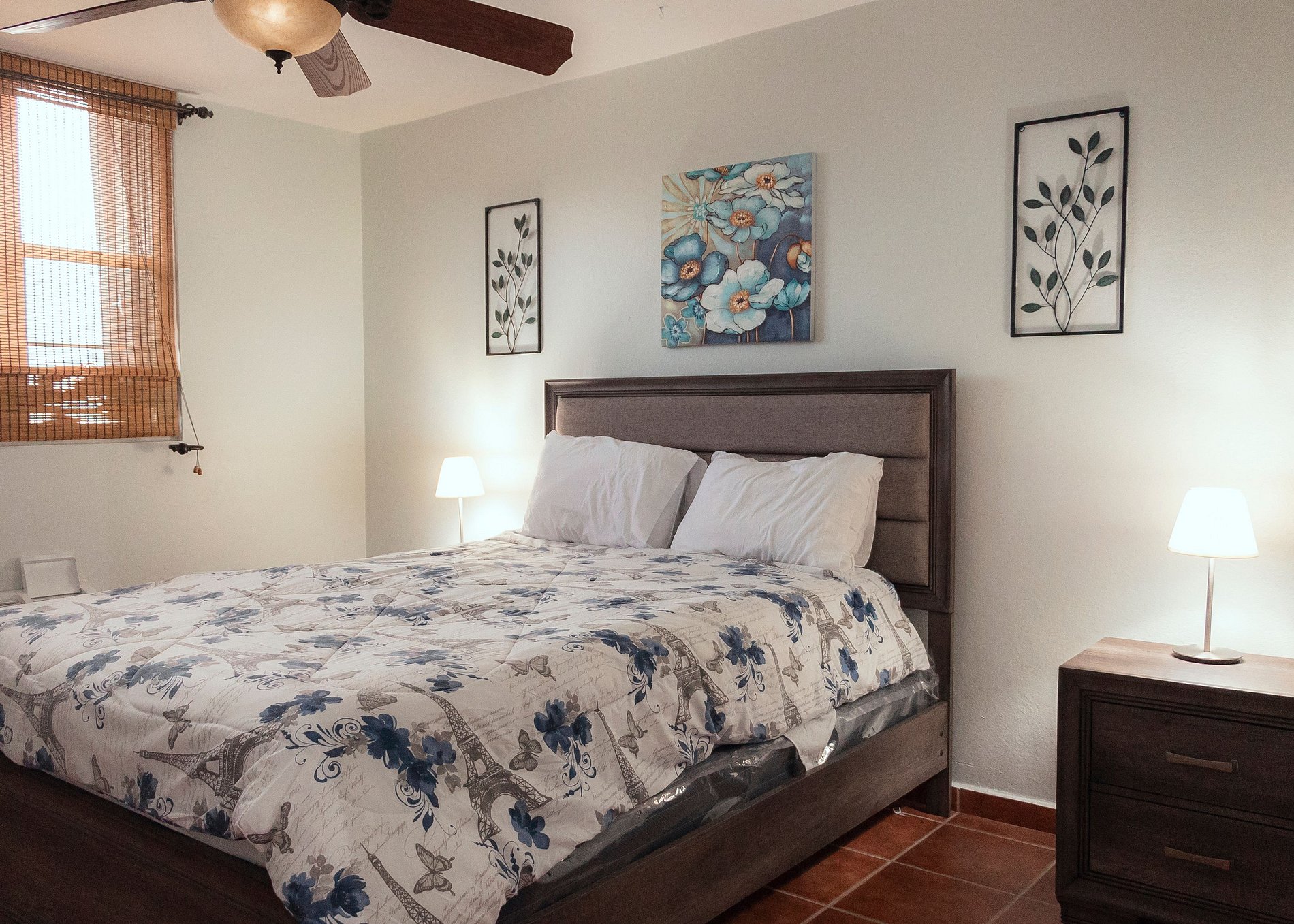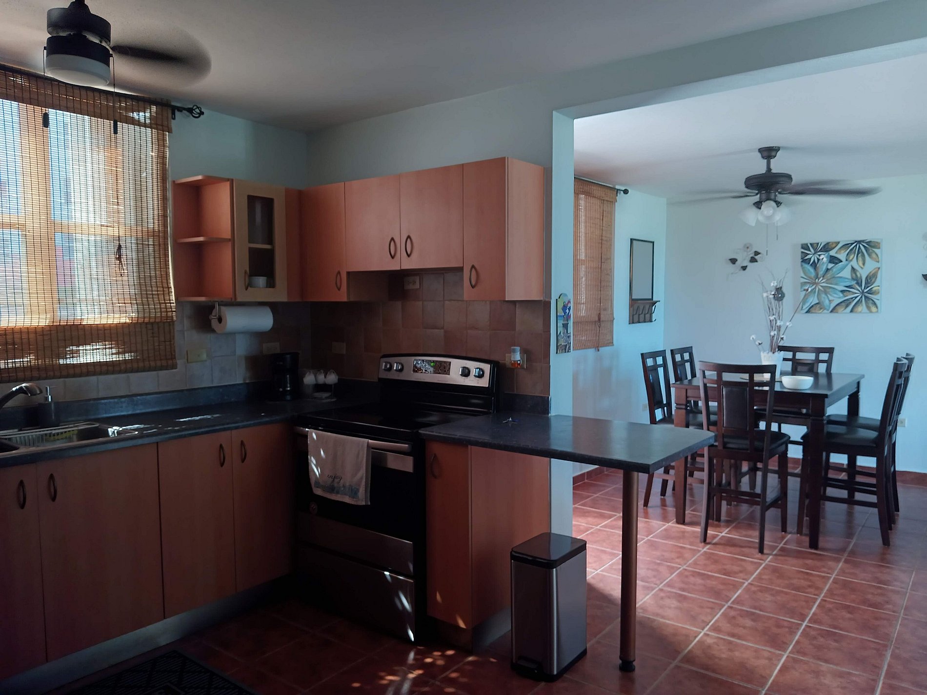 Our apartment features three bedrooms and two bathrooms, on the fourth floor with a terrace offering stunning views. For your comfort, each bedroom is equipped with air conditioning. The apartment includes two designated parking spots. Located in a serene community in Fajardo, our second home is close to several beaches, genuine restaurants, and attractions such as the El Yunque National RainForest and more. This apartment is ideal for those looking to delve into local activities, bask on immaculate beaches, immerse in the island's rich cultural experiences, or work remotely. Nearby beaches are just a short ride away, and the community provides a pool and a small playground for enjoyment with loved ones. Experience the peace of the Caribbean morning breeze from the balcony. The community assures your safety with 24-hour security. Living room is furnished with ROKU TVs for a variety of entertainment options or live streaming. Sleeping arrangements include a queen-size bed in the master and second bedroom, and two twin-size beds in the third bedroom. WIFI is available throughout the apartment. Additionally, the unit is outfitted with a washer/dryer, dishwasher, and coffee machine. Our location is excellent for exploring the historic and vibrant city of San Juan, as well as the crystal-clear waters of nearby beaches and rivers. Our guidebook provides further insights into enjoying the local area. We are thrilled to offer our home to you and eagerly anticipate your stay.