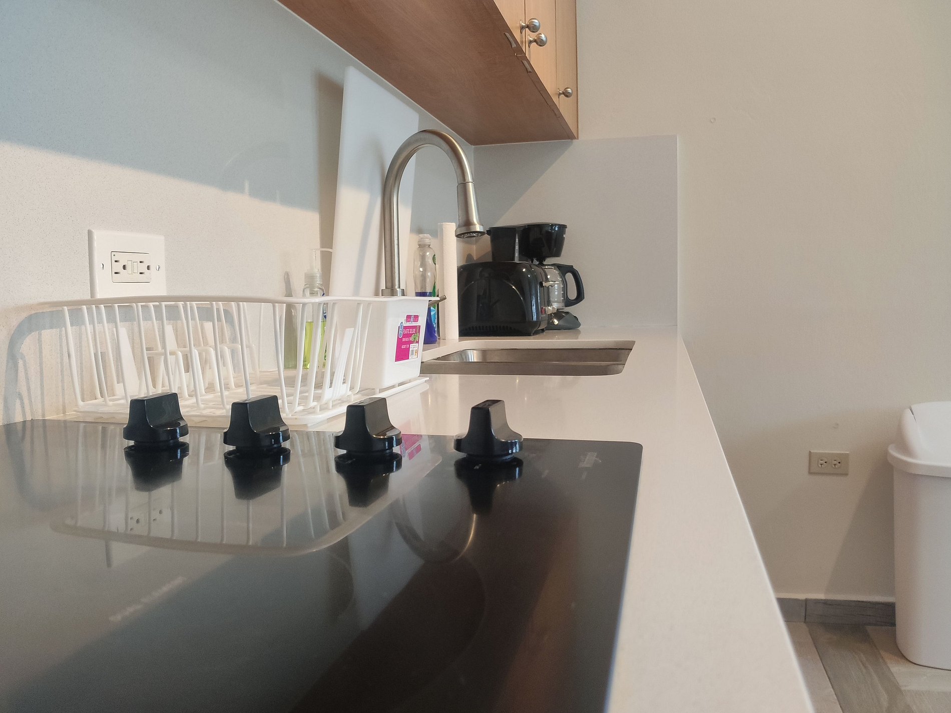 Nuestro estudio privado ofrece el equilibrio perfecto entre accesibilidad y tranquilidad, a solo unos pasos de la playa y ubicado frente a actividades acuáticas, restaurantes y empresas de senderismo. Equipado con una cama queen, WiFi, Smart TV y una cocina totalmente equipada con estufa de inducción, microondas, tostadora, refrigerador y utensilios básicos de cocina, puede cocinar y cenar en la comodidad de su propio espacio. También es accesible a todo lo que ofrece el área: puedes caminar a las aventuras, restaurantes, pequeños mercados y recorridos para explorar durante tu estadía. La selva tropical y su red de senderos están a poca distancia en auto para aquellos que buscan una experiencia más natural. No pierdas la oportunidad de explorar nuestra laguna bioluminiscente en un tour en kayak o en bote. Además, el pueblo de Luquillo y sus playas de surf ofrecen una escena diversa de música en vivo, festivales y arte para explorar en el Este.